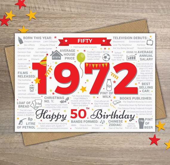 Happy 50th Birthday Male Mens Fifty Greetings Card Born In Etsy Nederland
